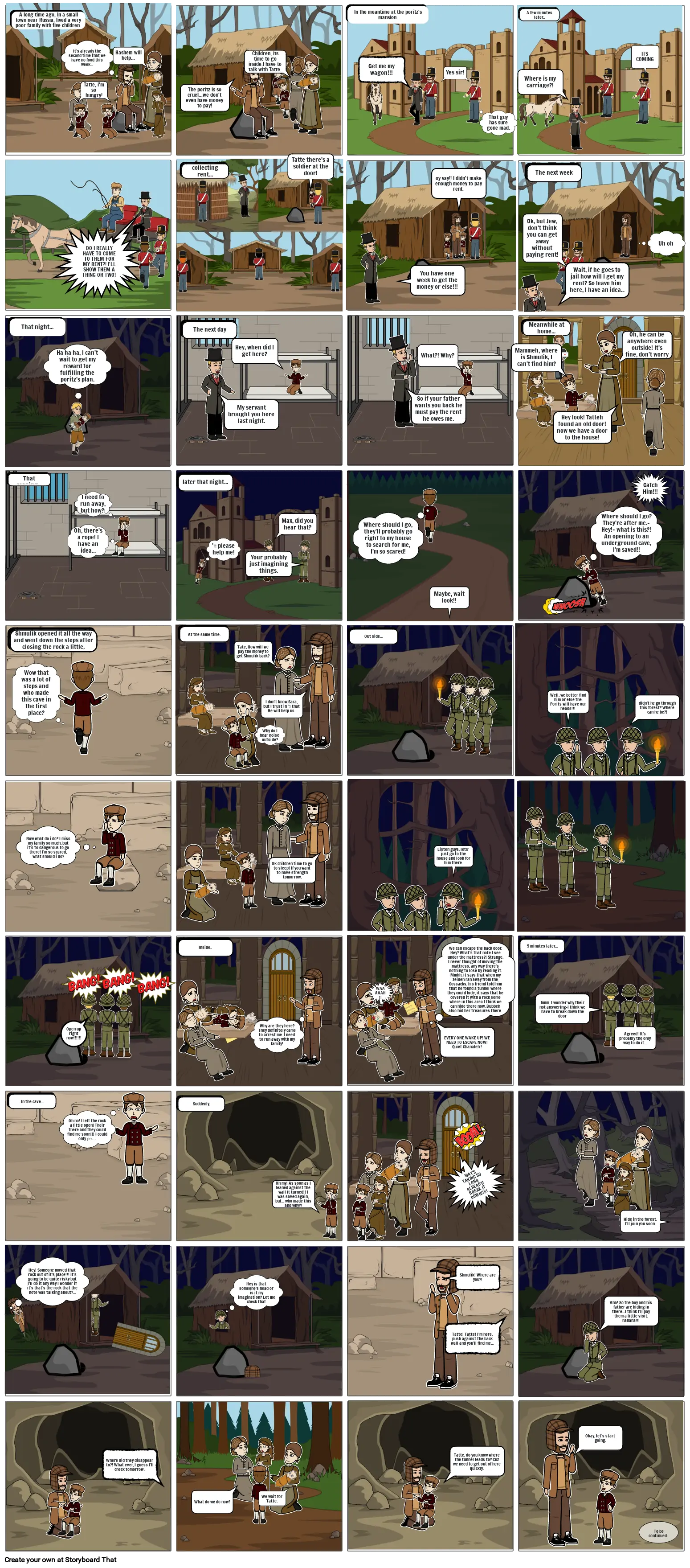 We can escape the back door, Hey? What's that note I see under the mattress?! Strange, I never thought of moving the mattress, any way there's nothing to lose by reading it. Mmhh, it says that when my zeideh ran away from the Cossacks, his friend told him that he found a tunnel where they could hide, it says that he covered it with a rock some where in this area I think we can hide there now. Bubbeh also hid her treasures there.