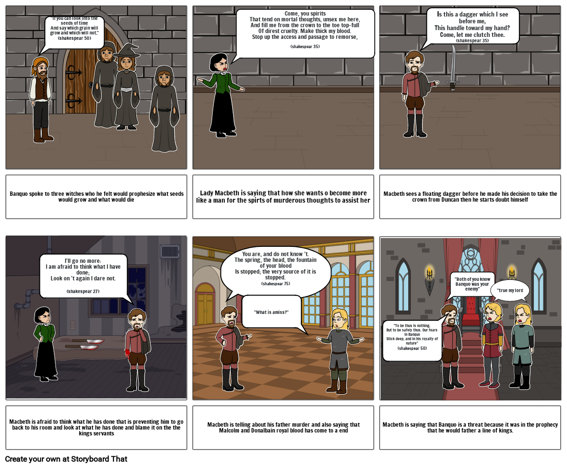 Macbeth sees a floating dagger before he made his decision to take the crown from Duncan then he starts doubt himself