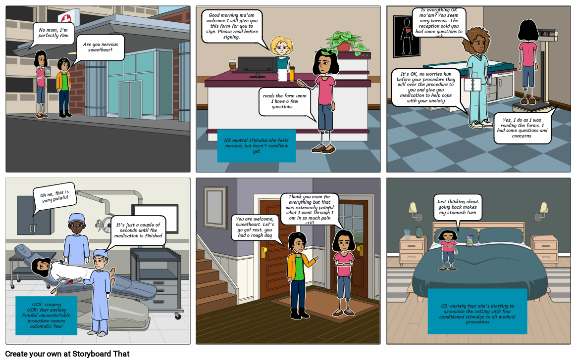 UCS: surgeryUCR: fear anxietyPainful uncomfortable procedure causes automatic fear