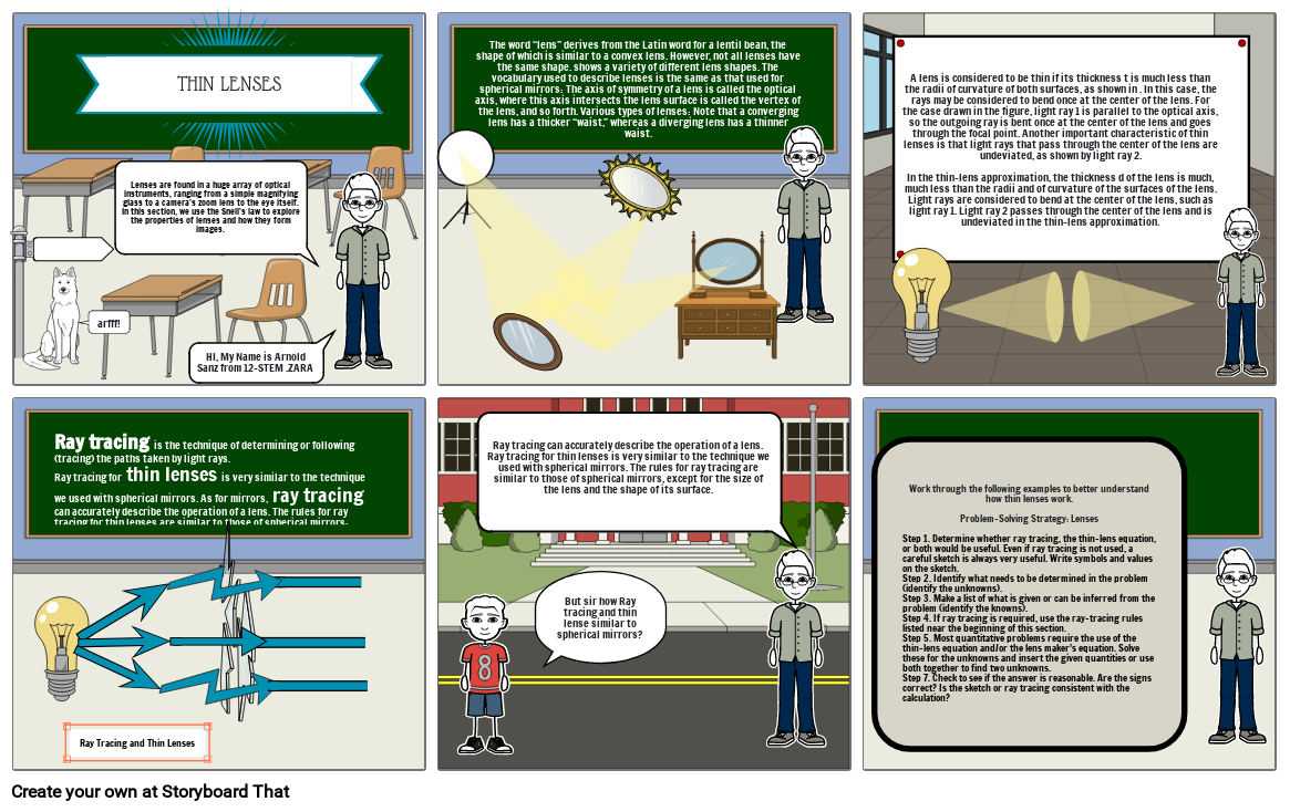 Ray tracing is the technique of determining or following (tracing) the paths taken by light rays.Ray tracing for thin lenses is very similar to the technique we used with spherical mirrors. As for mirrors, ray tracing can accurately describe the operation of a lens. The rules for ray tracing for thin lenses are similar to those of spherical mirrors: