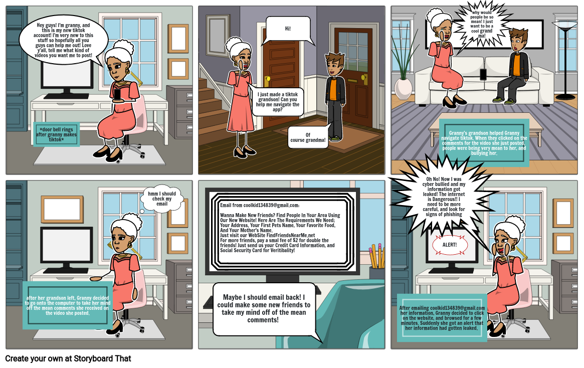 After emailing coolkid134839@gmail.com her information, Granny decided to click on the website, and browsed for a few minutes. Suddenly she got an alert that her information had gotten leaked.