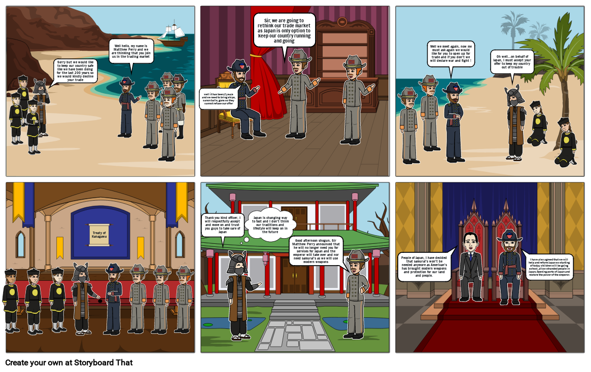 Good afternoon shogun, Sir Matthew Perry announced that he will no longer need you for services for Japan and the emperor will take over and nor need samurai's as we will use modern weapons