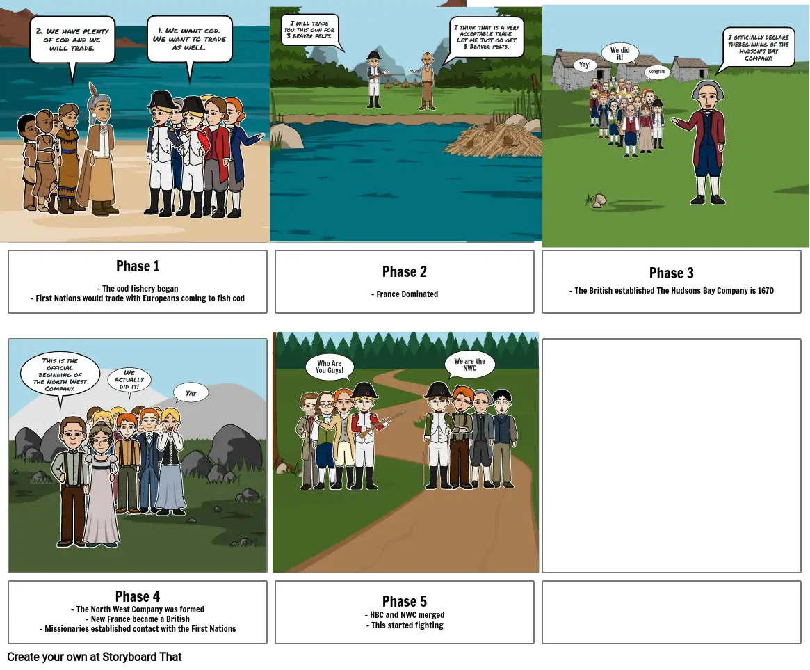 Phase 1- The cod fishery began- First Nations would trade with Europeans coming to fish cod
