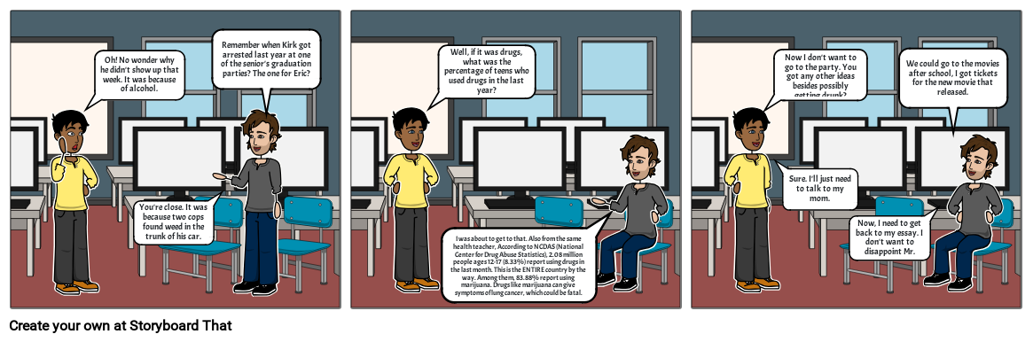 I was about to get to that. Also from the same health teacher, According to NCDAS (National Center for Drug Abuse Statistics), 2.08 million people ages 12-17 (8.33%) report using drugs in the last month. This is the ENTIRE country by the way. Among them, 83.88% report using marijuana. Drugs like marijuana can give symptoms of lung cancer, which could be fatal.