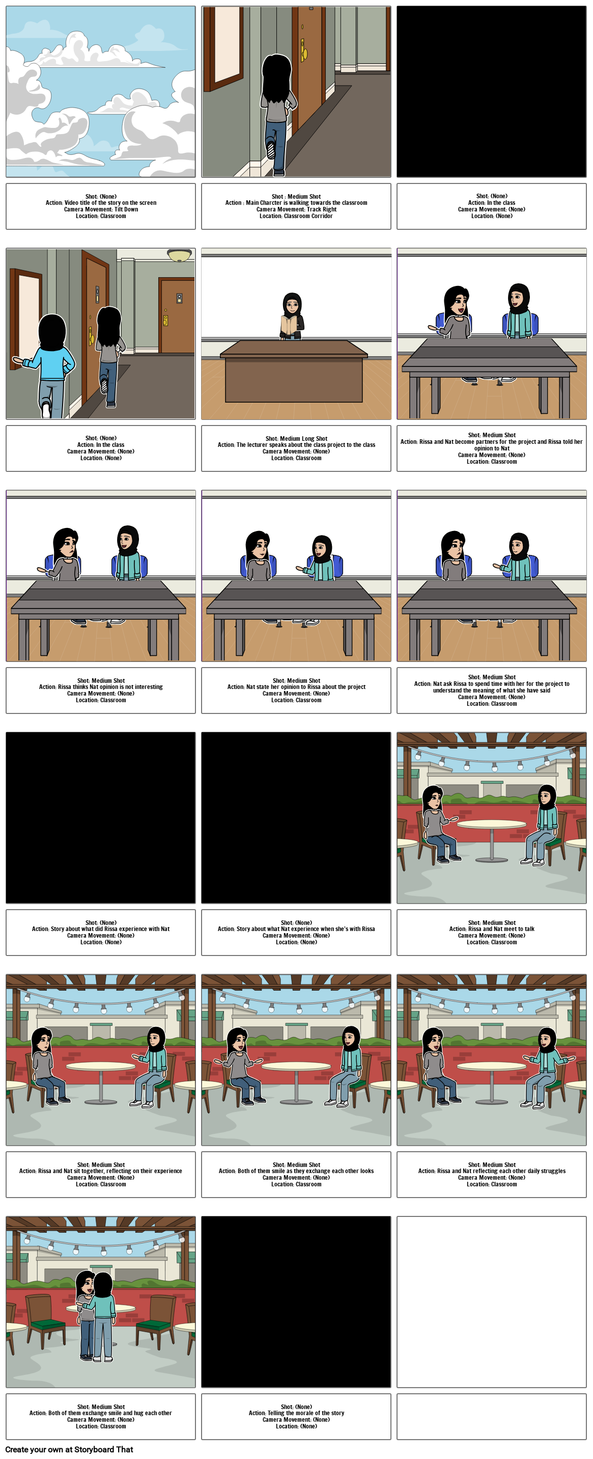 Shot: Medium ShotAction: Rissa and Nat reflecting each other daily struggles Camera Movement: (None)Location: Classroom
