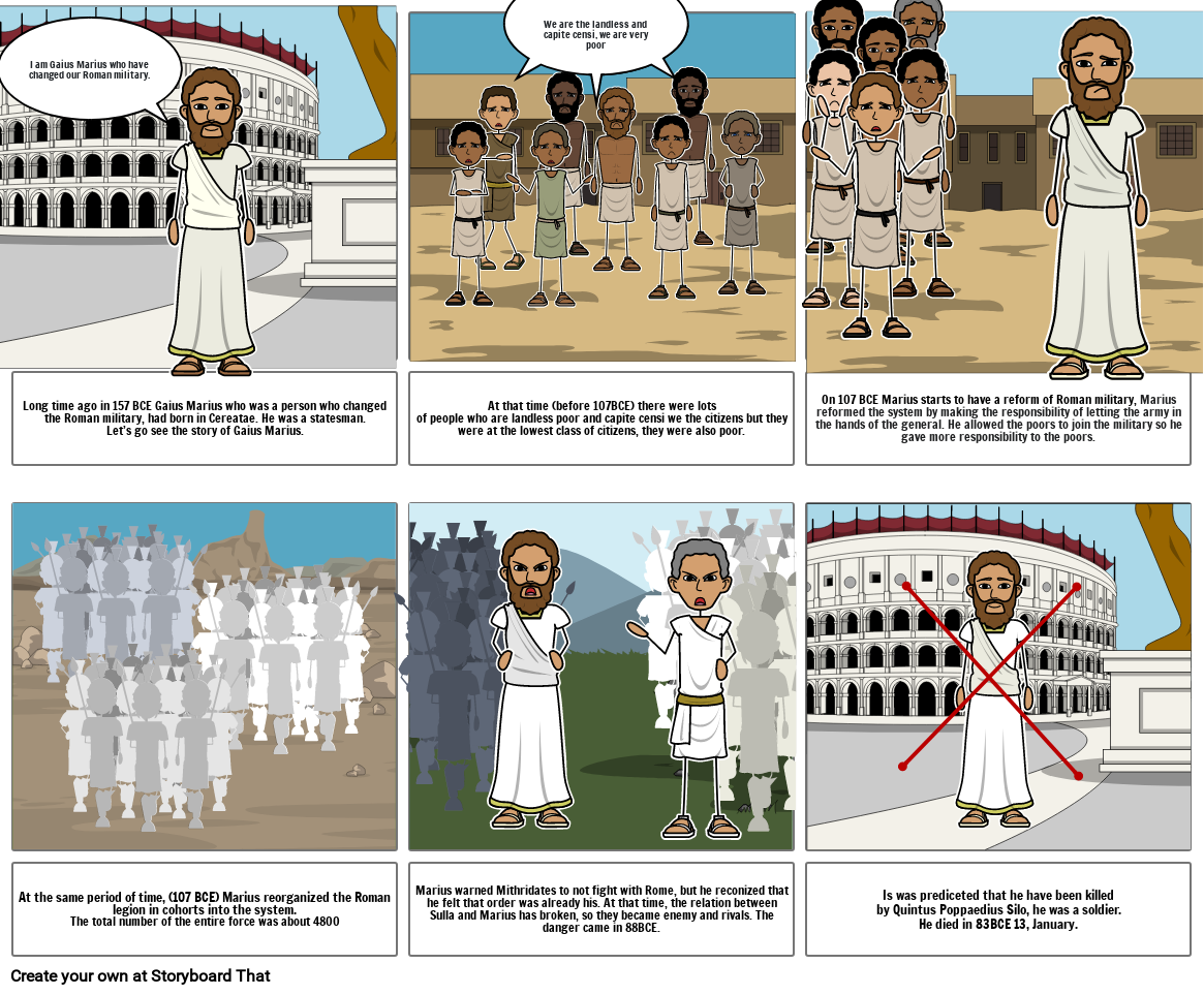 Long time ago in 157 BCE Gaius Marius who was a person who changed the Roman military, had born in Cereatae. He was a statesman.Let’s go see the story of Gaius Marius.