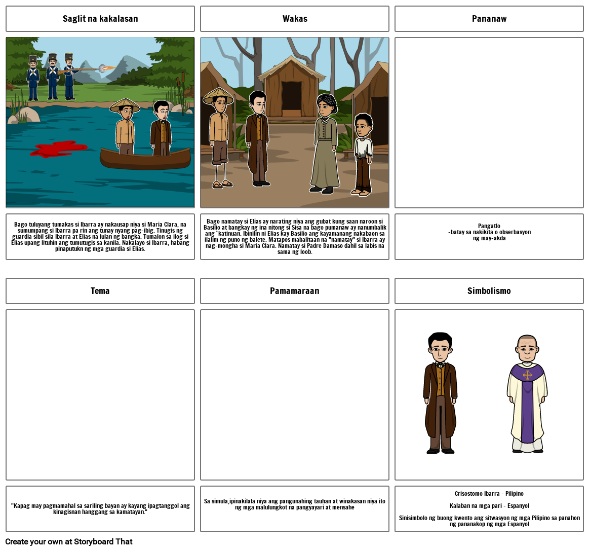 Crisostomo Ibarra - PilipinoKalaban na mga pari - EspanyolSinisimbolo ng buong kwento ang sitwasyon ng mga Pilipino sa panahon ng pananakop ng mga Espanyol