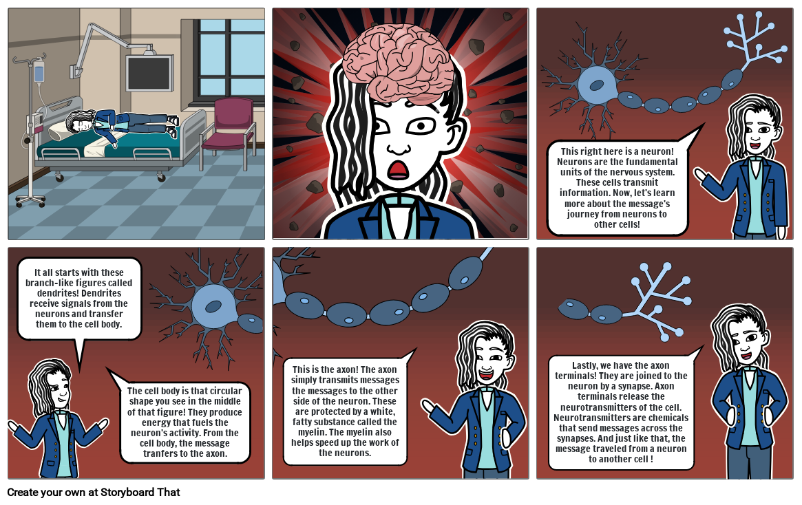 Lastly, we have the axon terminals! They are joined to the neuron by a synapse. Axon terminals release the neurotransmitters of the cell. Neurotransmitters are chemicals that send messages across the synapses. And just like that, the message traveled from a neuron to another cell !