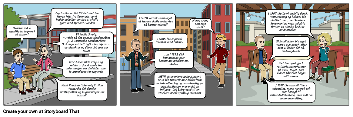 Jeg forklarer! På 1800-tallet ble Norge fritt fra Danmark, og vi hadde debatter om hva vi skulle gjøre med språket i landet