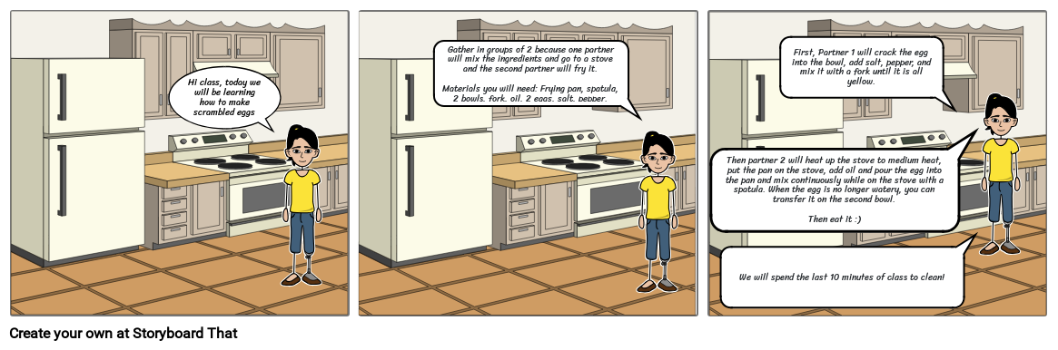Hi class, today we will be learning how to make scrambled eggs