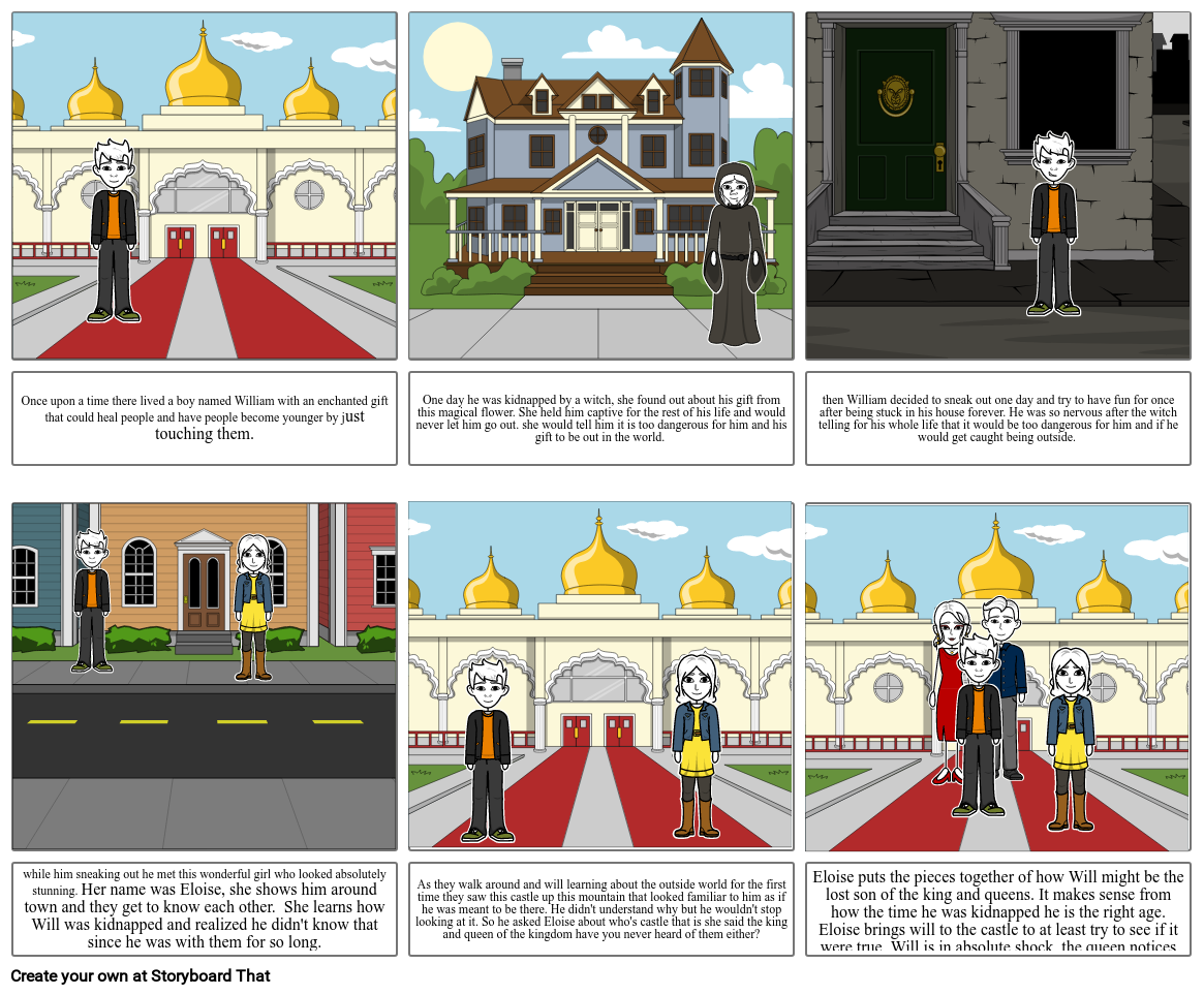 Eloise puts the pieces together of how Will might be the lost son of the king and queens. It makes sense from how the time he was kidnapped he is the right age. Eloise brings will to the castle to at least try to see if it were true. Will is in absolute shock. the queen notices people approaching opens the gate and saw her son standing right before her and once again they were reunited and lived happily ever after!