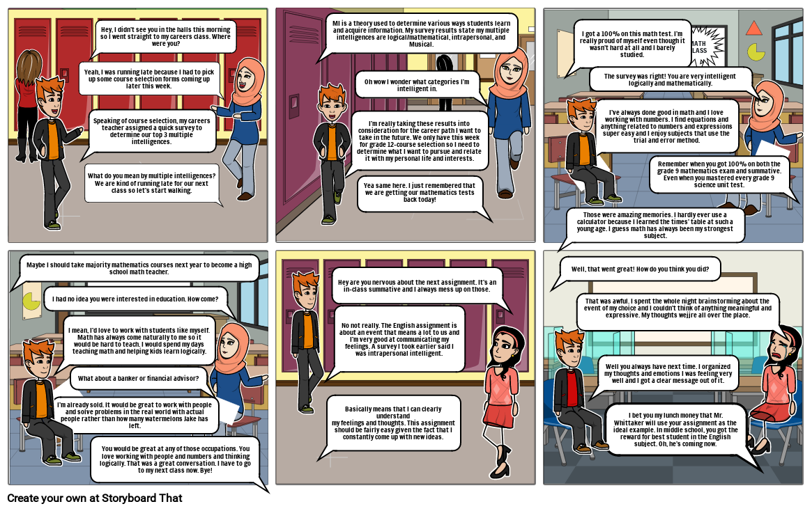 Speaking of course selection, my careers teacher assigned a quick survey to determine our top 3 multiple intelligences.