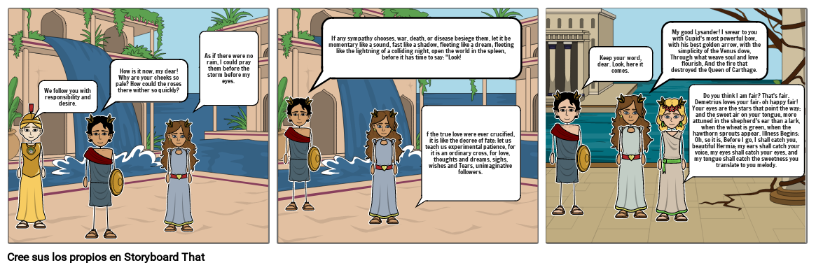 My good Lysander! I swear to you with Cupid's most powerful bow, with his best golden arrow, with the simplicity of the Venus dove, Through what weave soul and love flourish, And the fire that destroyed the Queen of Carthage.