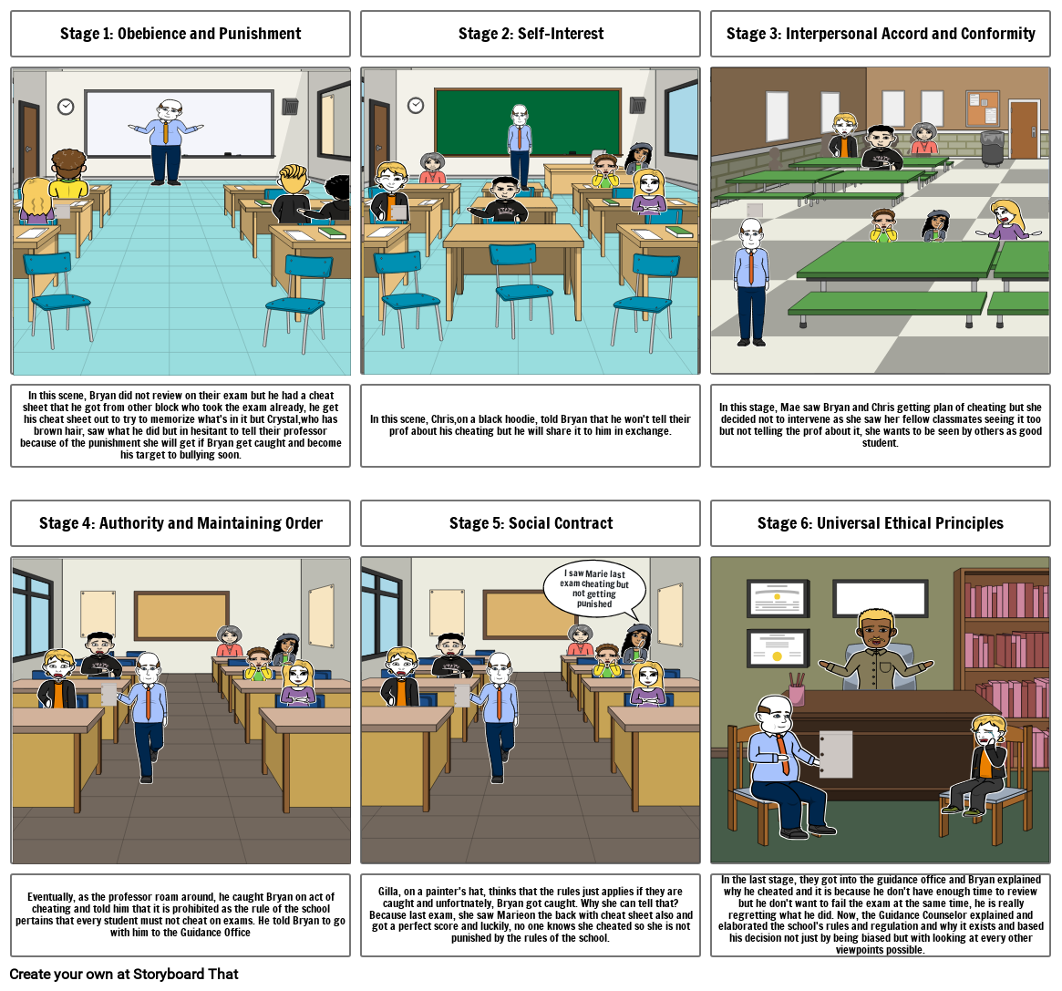 In the last stage, they got into the guidance office and Bryan explained why he cheated and it is because he don't have enough time to review but he don't want to fail the exam at the same time, he is really regretting what he did. Now, the Guidance Counselor explained and elaborated the school's rules and regulation and why it exists and based his decision not just by being biased but with looking at every other viewpoints possible.
