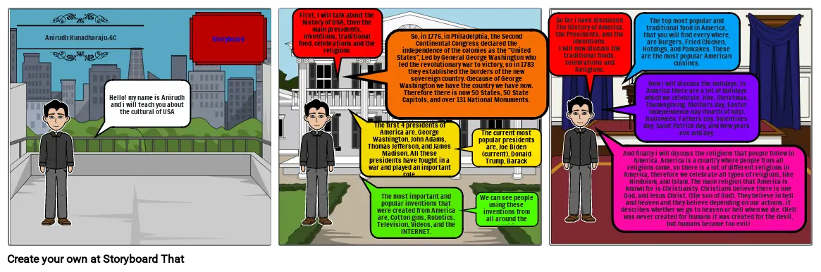 Hello! my name is Anirudh and i will teach you about the cultural of USA