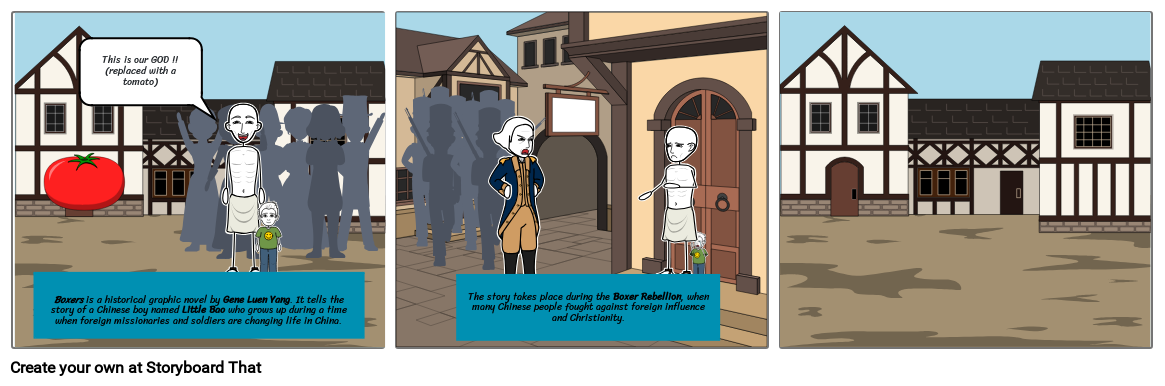 Boxers is a historical graphic novel by Gene Luen Yang. It tells the story of a Chinese boy named Little Bao who grows up during a time when foreign missionaries and soldiers are changing life in China. The story takes place during the Boxer Rebellion, when many Chinese people fought against foreign influence and Christianity.