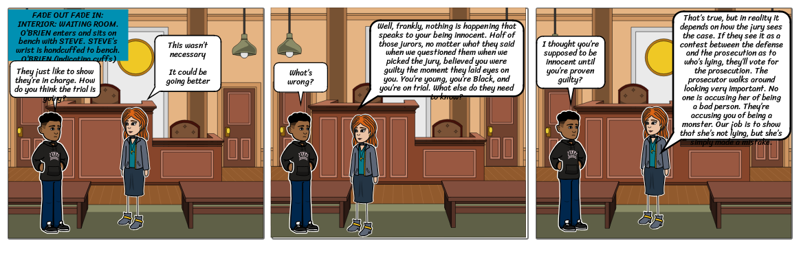Well, frankly, nothing is happening that speaks to your being innocent. Half of those jurors, no matter what they said when we questioned them when we picked the jury, believed you were guilty the moment they laid eyes on you. You’re young, you’re Black, and you’re on trial. What else do they need to know?