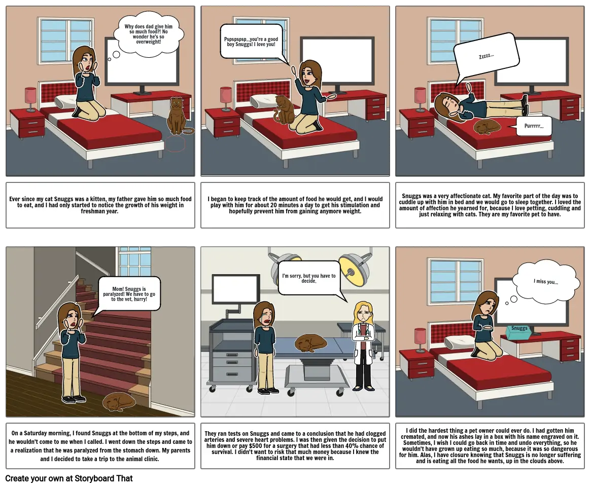 Ever since my cat Snuggs was a kitten, my father gave him so much food to eat, and I had only started to notice the growth of his weight in freshman year.