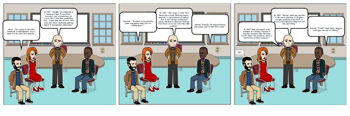 Dr. Phil- “Alright, I’m stepping in because I hear frustration, burnout, and a breakdown in trust. But I also hear something else… I hear that you all care. Let’s slow this down. Nobody’s getting heard if everybody’s defending.”