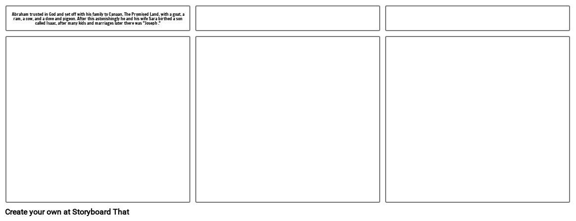 Abraham trusted in God and set off with his family to Canaan, The Promised Land, with a goat, a ram, a cow, and a dove and pigeon. After this astonishingly he and his wife Sara birthed a son called Isaac, after many kids and marriages later there was "Joseph ."