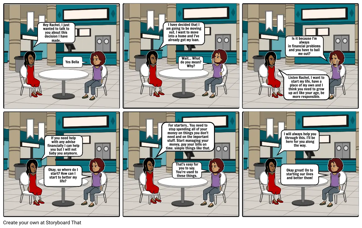 Listen Rachel, I want to start my life, have a place of my own and I think you need to grow up act like your age, be more responsible.