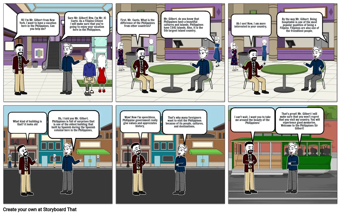 Sure Mr. Gilbert! Btw, I'm Mr. JC Cueto. As a Filipino Citizen I will make sure that you're going to enjoy your vacation here in the Philippines.