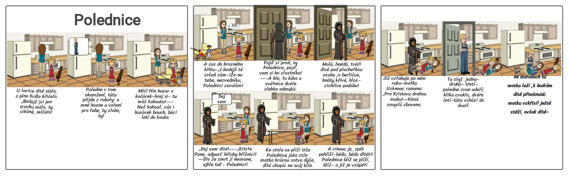 „Dej sem dítě!―–„Kriste Pane, odpusť hříchy hříšnici!―Div že smrt jí neovane, ejhle tuť– Polednici!