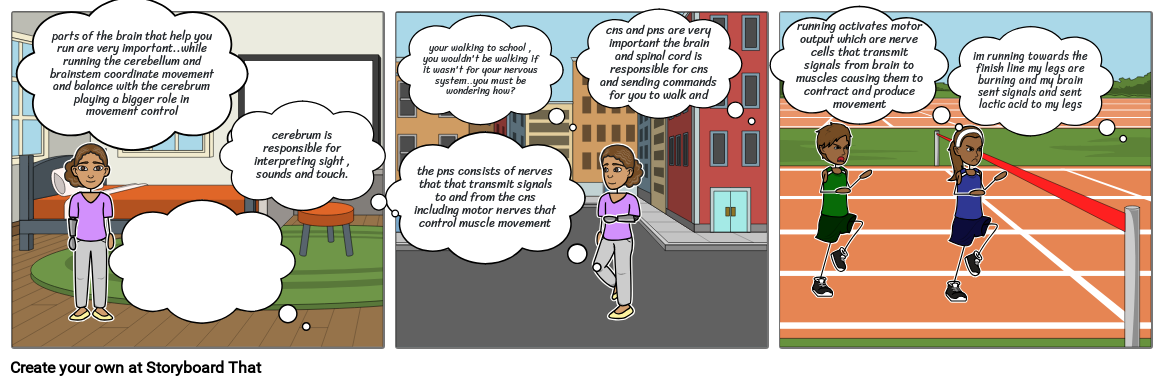 im running towards the finish line my legs are burning and my brain sent signals and sent lactic acid to my legs