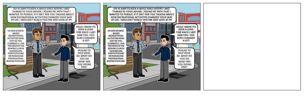 OH HI SAM! ITS BEEN A WHILE SINCE BEFORE ! AND THANKS TO YOUR ADVISE, I FOUND MY PATH THAT I WANTED TO PURSUE. IF IT ISN'T FOR YOU TALKING ABOUT HOW RECREATIONAL ACTIVITIES CHANGED YOUR WAY OF LIFE. I WOULDN'T REACH THIS FAR AND LOOK AT MY GOALS.