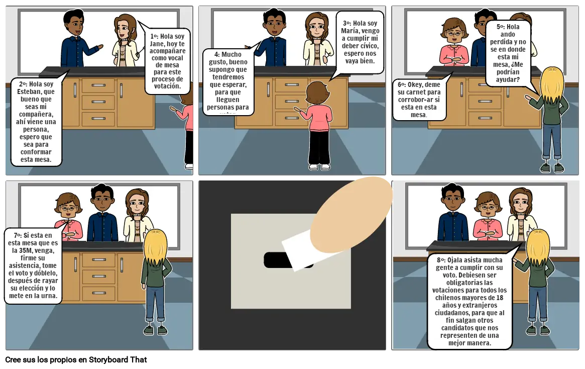 3°: Hola soy María, vengo a cumplir mi deber cívico, espero nos vaya bien.