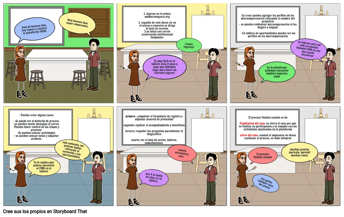 En crear puedes agregar los perfiles de los microemperesarios colocando el nombre del propietrio- se pueden evidenciar microempresarios si los llegara a asignar- En tablero de oportunidades puedes ver los perfiles de los microempresarios