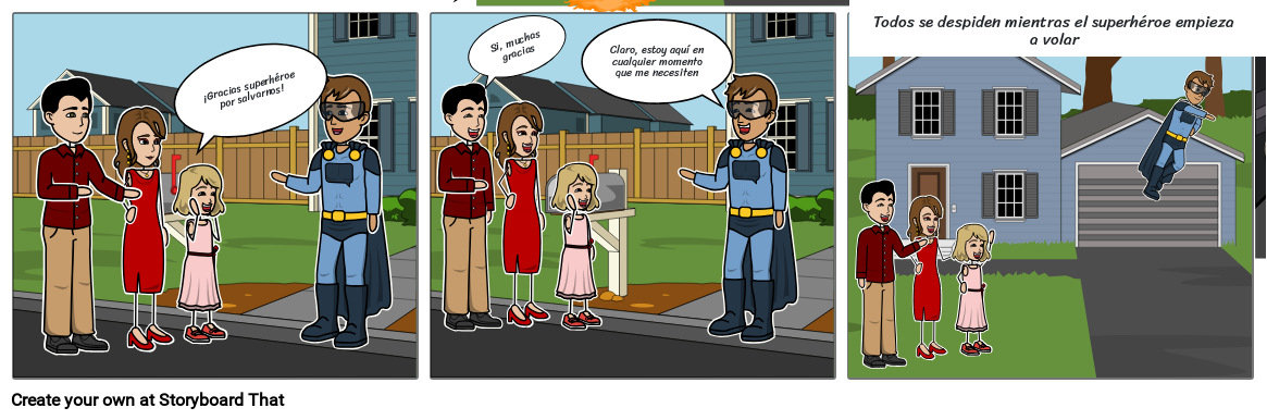 El super héroe procede a levantar a los tres a empezar a volar a un lugar seguro