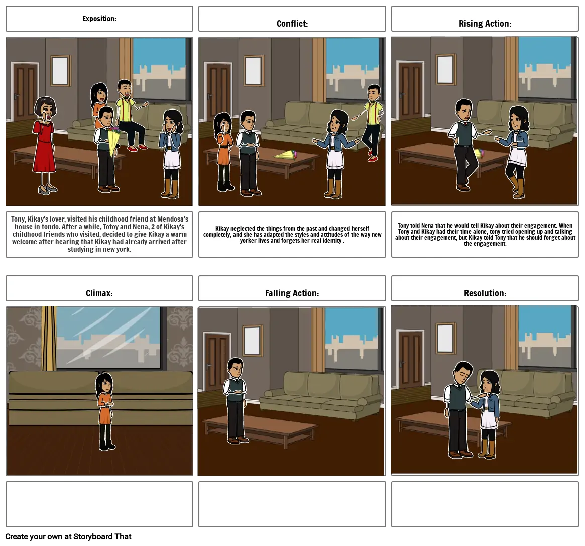 Kikay neglected the things from the past and changed herself completely, and she has adapted the styles and attitudes of the way new yorker lives and forgets her real identity .