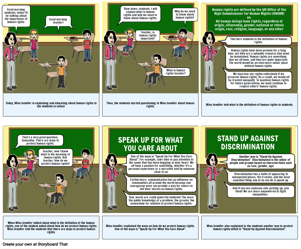 Miss Jennifer explained the ways on how do we protect human rights. One of the ways is "Speak Up For What You Care About".