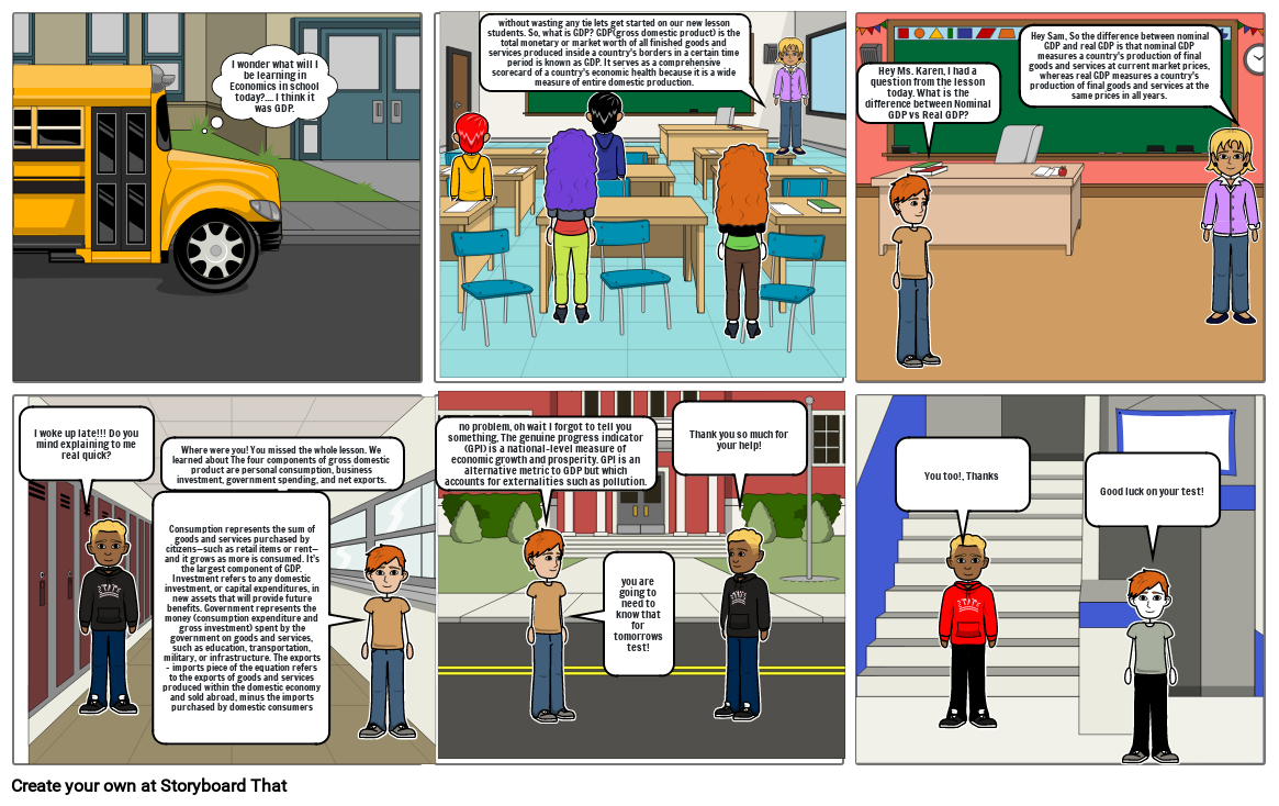 I wonder what will I be learning in Economics in school today?.... I think it was GDP.