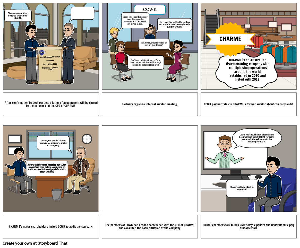 Albert, thank you for choosing our CCWK accounting firm. Before conducting an audit, we need to investigate information about CHARME.