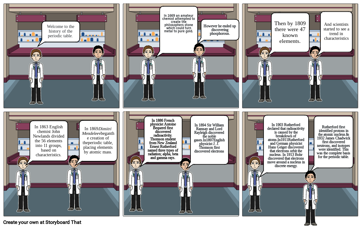 In 1869Dimitri Mendeleevbeganthe creation of theperiodic table, placing elements by atomic mass.