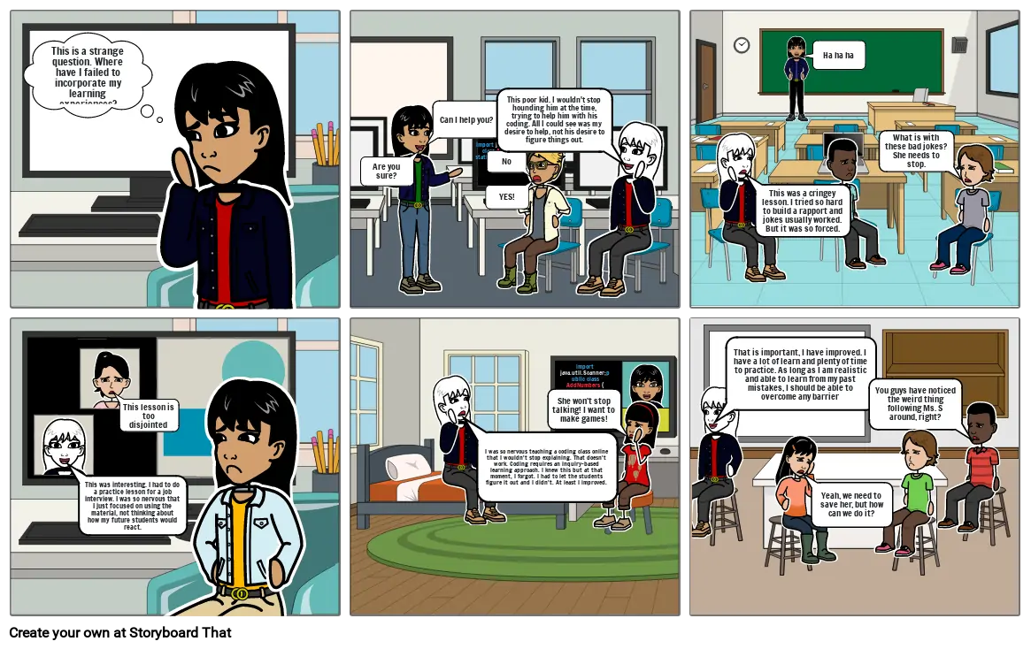 I was so nervous teaching a coding class online that I wouldn't stop explaining. That doesn't work. Coding requires an inquiry-based learning approach. I knew this but at that moment, I forgot. I had to let the students figure it out and I didn't. At least I improved.