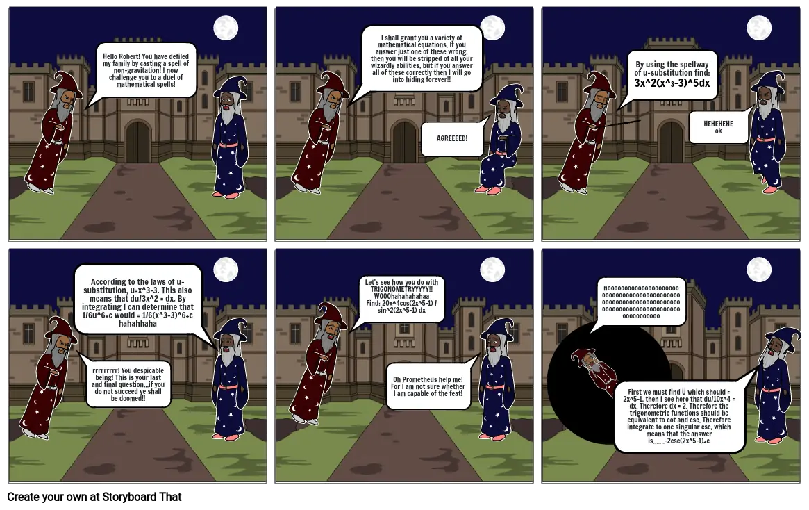 Hello Robert! You have defiled my family by casting a spell of non-gravitation! I now challenge you to a duel of mathematical spells!