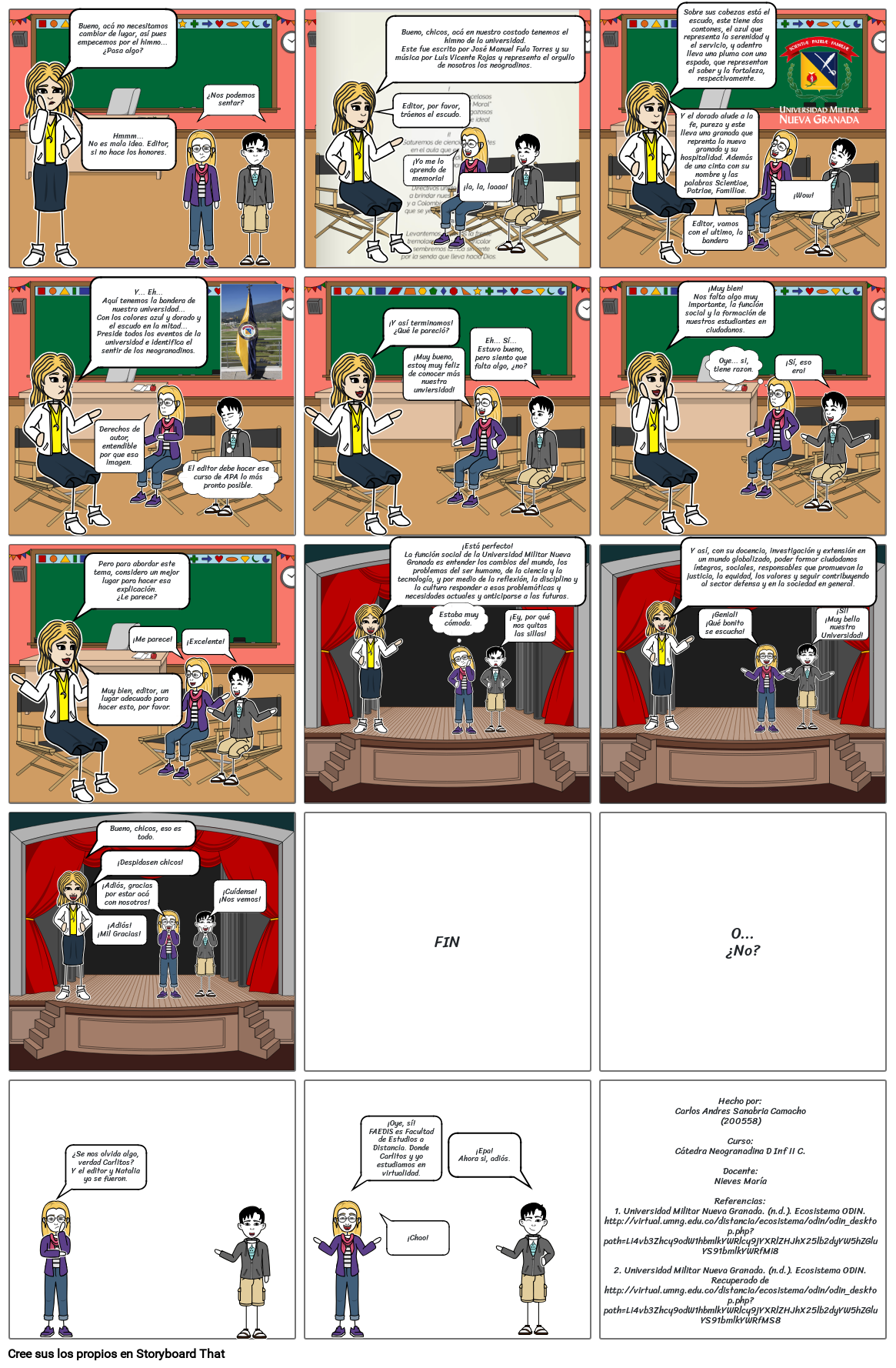 Hecho por:Carlos Andres Sanabria Camacho(200558)Curso:Cátedra Neogranadina D Inf II C.Docente:Nieves MaríaReferencias:1. Universidad Militar Nueva Granada. (n.d.). Ecosistema ODIN. http://virtual.umng.edu.co/distancia/ecosistema/odin/odin_desktop.php?path=Li4vb3Zhcy9odW1hbmlkYWRlcy9jYXRlZHJhX25lb2dyYW5hZGluYS91bmlkYWRfMi8 2. Universidad Militar Nueva Granada. (n.d.). Ecosistema ODIN. Recuperado de http://virtual.umng.edu.co/distancia/ecosistema/odin/odin_desktop.php?path=Li4vb3Zhcy9odW1hbmlkYWRlcy9jYXRlZHJhX25lb2dyYW5hZGluYS91bmlkYWRfMS8