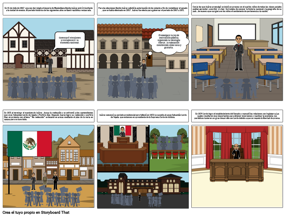 En 15 de Julio de 1867  una vez derrotado el imperio de Maximiliano.Benito Juárez entró triunfante a la ciudad de mexico. Al periodo histórico de los siguientes años se llamó república restaurada.
