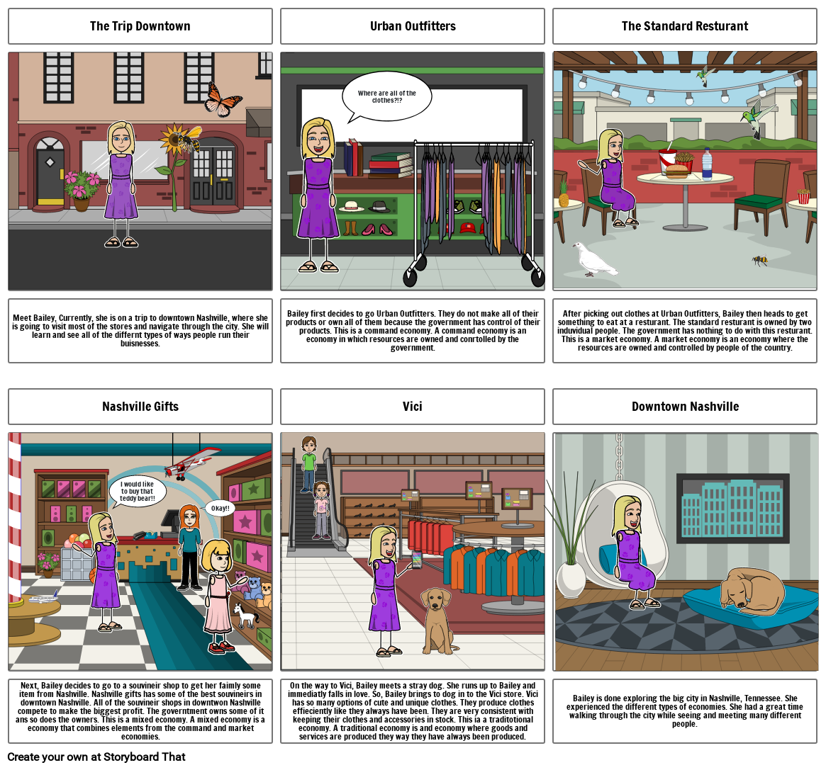 Meet Bailey, Currently, she is on a trip to downtown Nashville, where she is going to visit most of the stores and navigate through the city. She will learn and see all of the differnt types of ways people run their buisnesses.