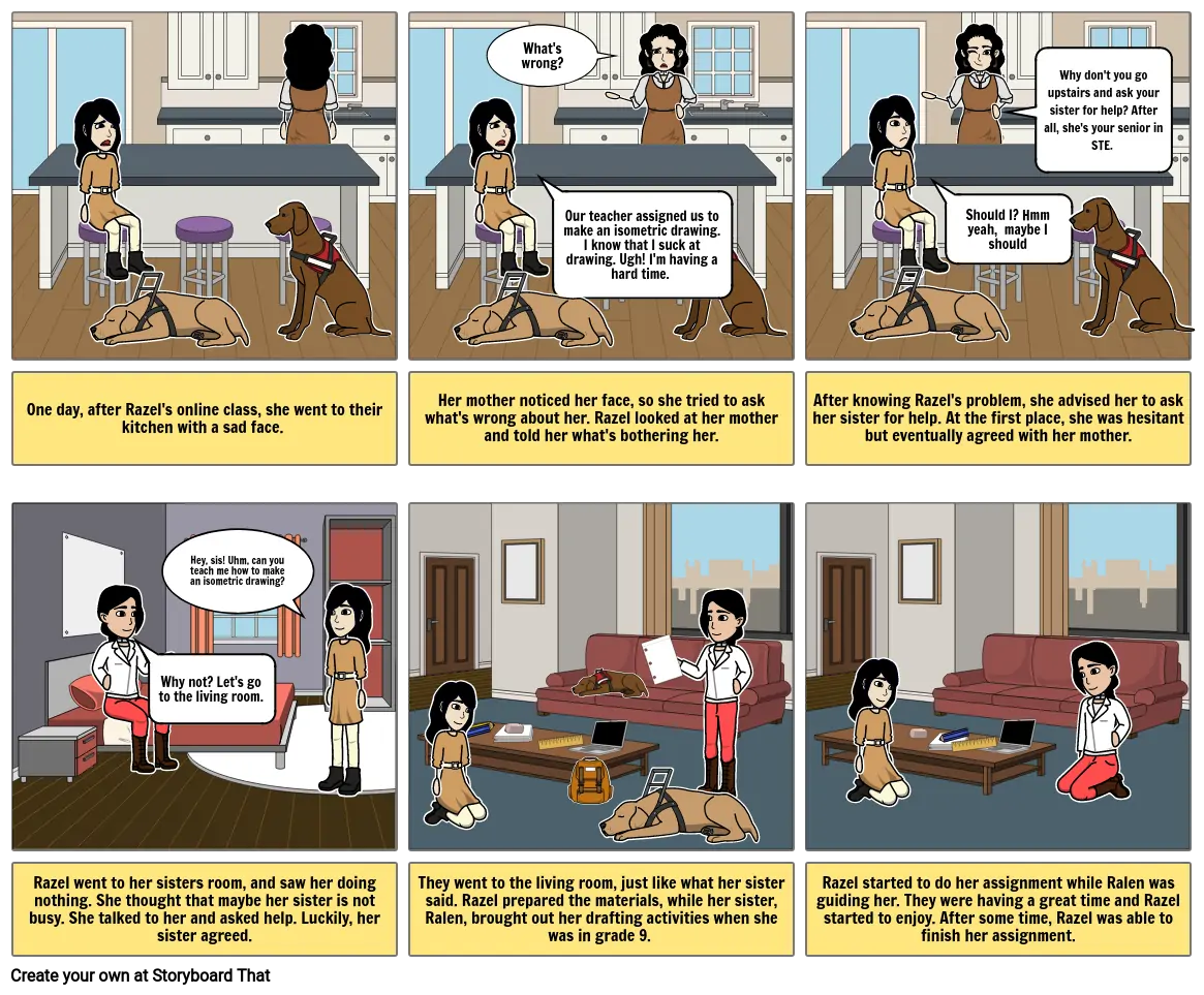 They went to the living room, just like what her sister said. Razel prepared the materials, while her sister, Ralen, brought out her drafting activities when she was in grade 9.