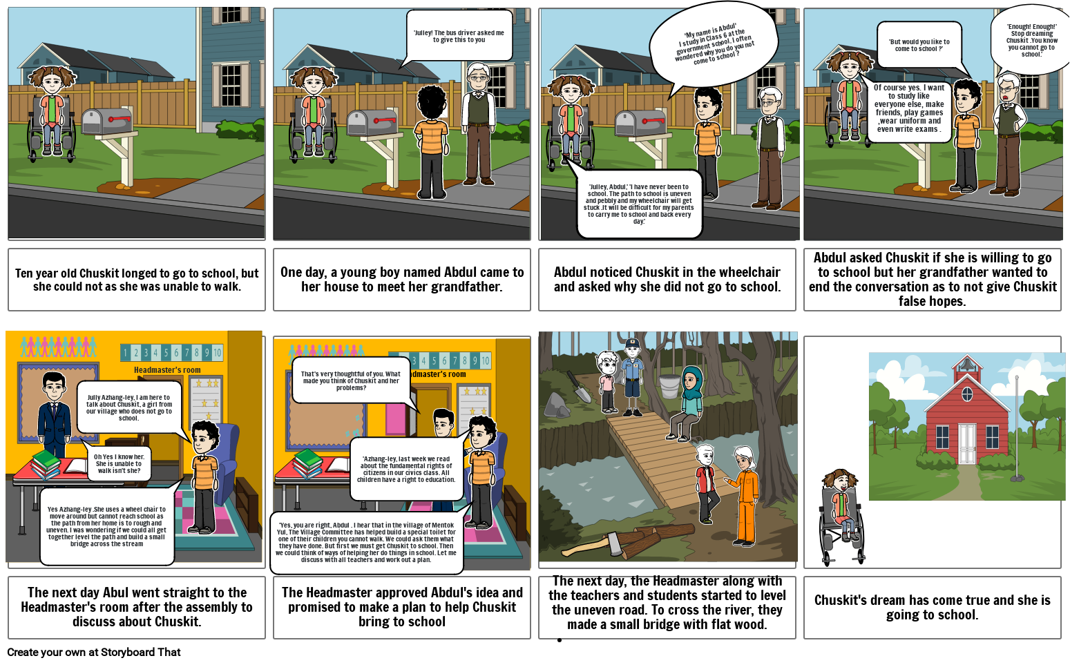 Abdul noticed Chuskit in the wheelchair and asked why she did not go to school.