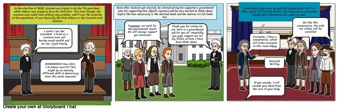 NOOOOOOO!!! How did I, J.Q.Adams lose?!?! This might be an entirely different shift in democracy from this point onwards!