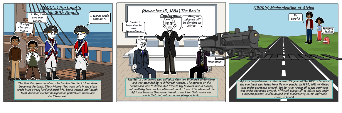 The first European country to be involved in the African slave trade was Portugal. The Africans that were sold in the slave trade lived a very hard and cruel life, being worked until death. Most Africans worked in sugarcane plantations in the hot Caribbean sun.