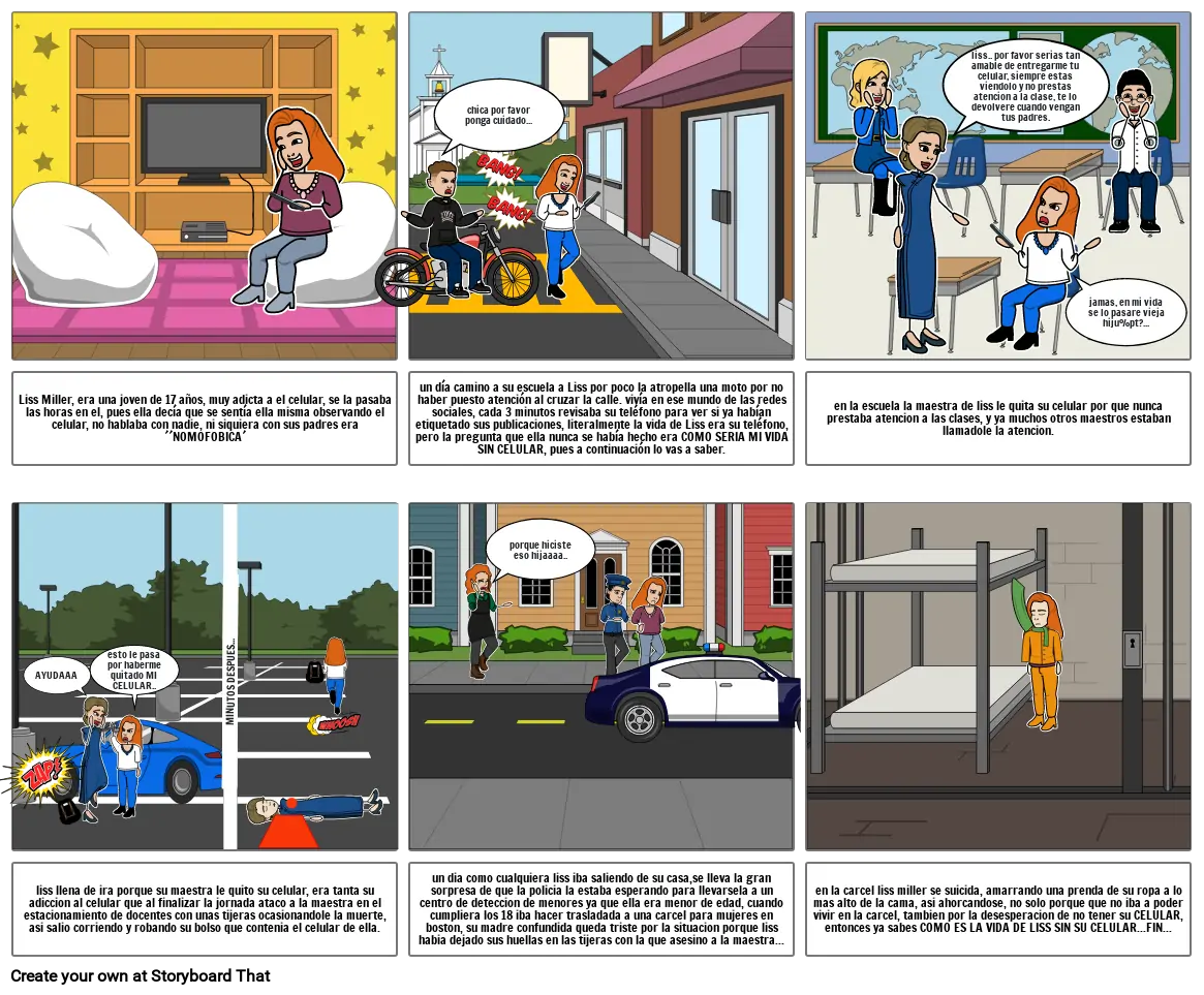Liss Miller, era una joven de 17 años, muy adicta a el celular, se la pasaba las horas en el, pues ella decía que se sentía ella misma observando el celular, no hablaba con nadie, ni siquiera con sus padres era ´´NOMOFOBICA´