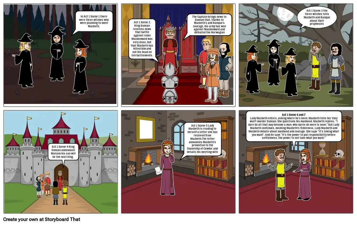 Act 1 Scene 3 the three witches tells Macbeth and Banquo about their prophecies