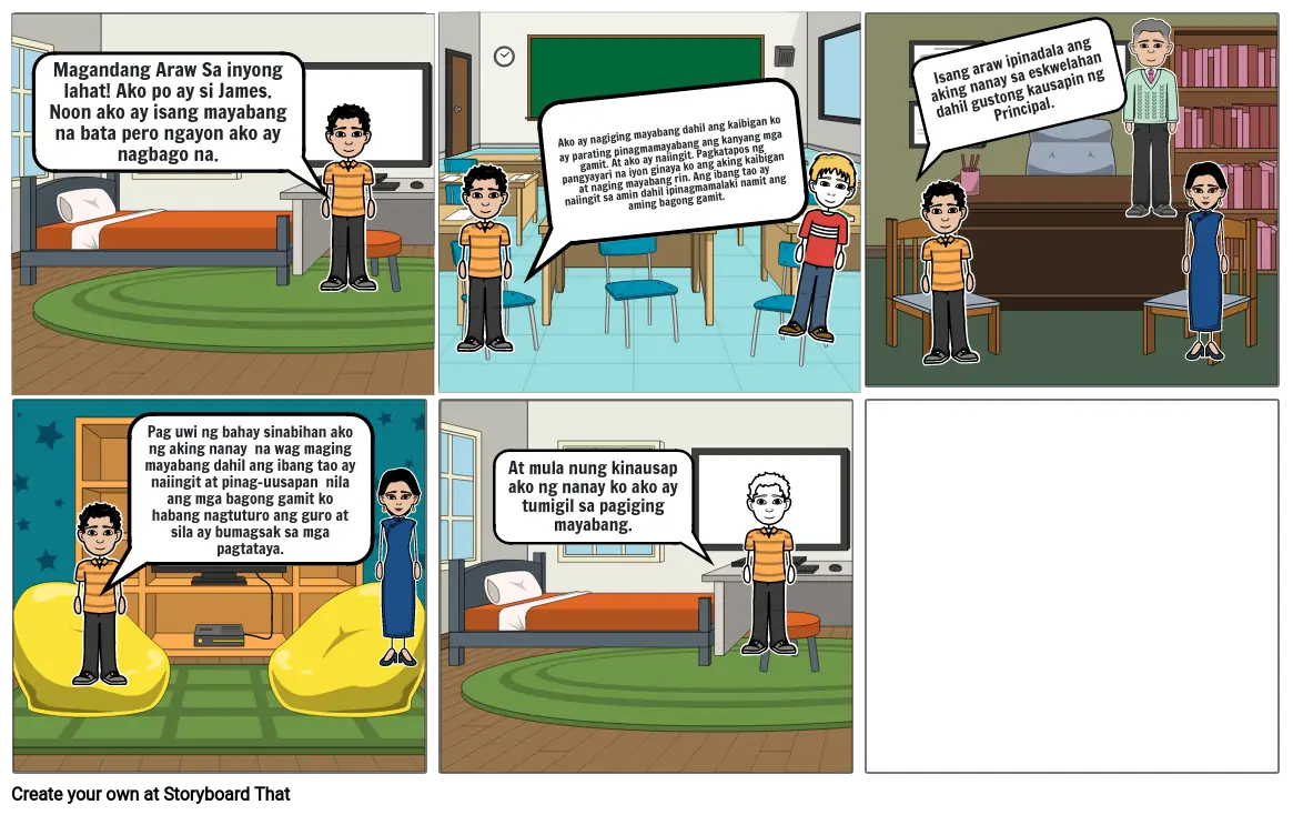 Magandang Araw Sa inyong lahat! Ako po ay si James. Noon ako ay isang mayabang na bata pero ngayon ako ay nagbago na.