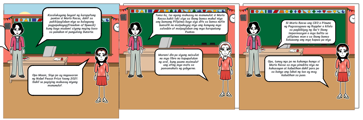 Opo Maam, Siya po ay nagawaran ng Nobel Peace Prize taong 2021.Dahil sa pagiging mahusay niyang manunulat.
